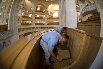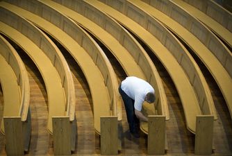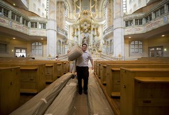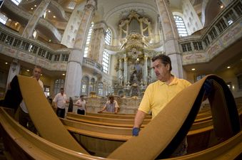 statteten wir mit maßgefertigten, halbrunden Kirchenbankpolstern aus.
