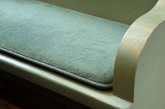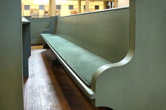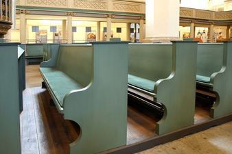 60 Sitzpolster, farblich passend zu den grünen Kirchenbänken,